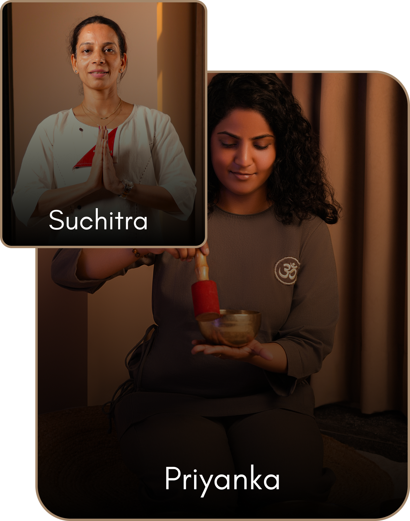 Priyanka and Suchitra works primarily with therapeutic sound to gently guide the body into deep rest and nervous system regulation. Their sessions are designed for women navigating pregnancy, postpartum recovery, and menopausal transitions – helping the mind slow down and the body shift from constant alertness into repair.