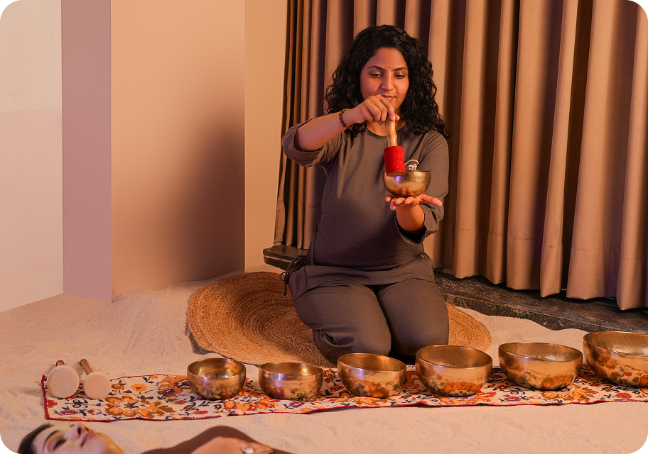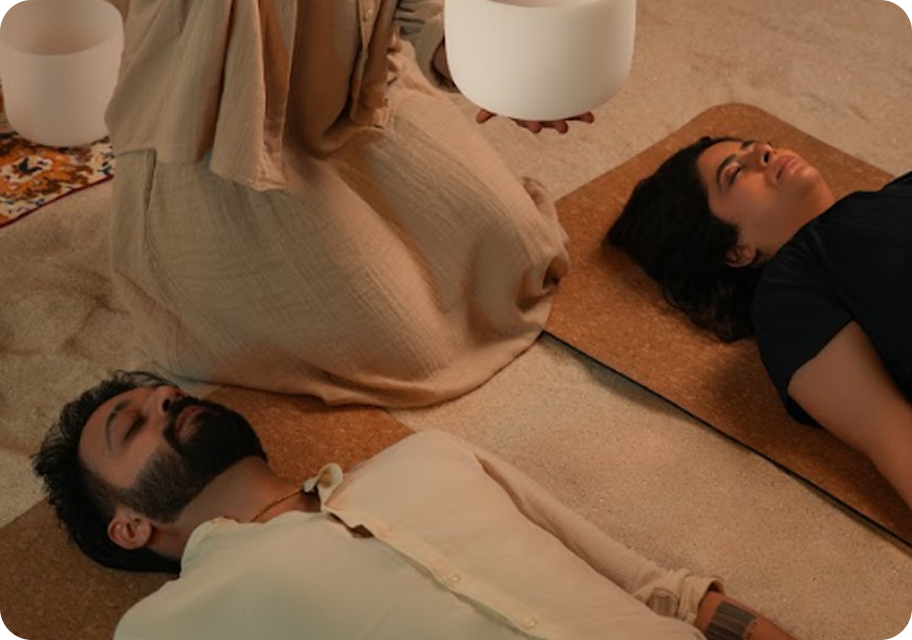 Along with sound healing, they facilitate Yoga Nidra and Sensory Reset sessions, using breath, stillness, and guided awareness to release mental fatigue and accumulated tension. The intention is not effortful meditation, but safe unwinding – allowing the body to rest without pressure to ‘perform calm’.